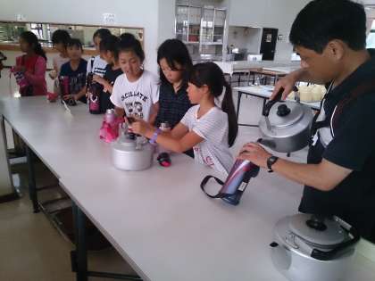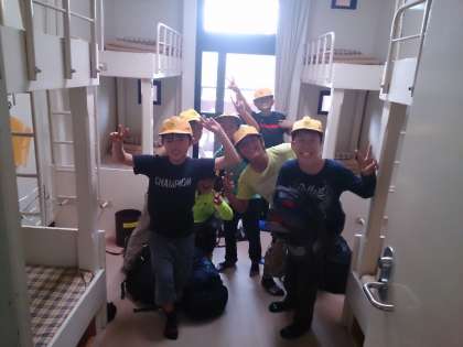 荷物を開いたり、シーツをとりに行ったり、お茶を足してもらったりといきいきと活動しています。気温が上がったのでお茶も飲みほしてしまった子が多く、少年自然の家の食堂の方が、すぐにお茶を用意してくださいました。ありがとうございます。