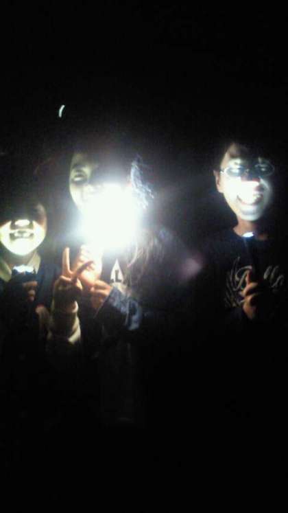 行きはよいよい帰りはこわい。来るときは学年のみんなでワイワイ来た道も、数人で歩くととってもこわいです。前方からは先行者のキャーという叫び声が…。