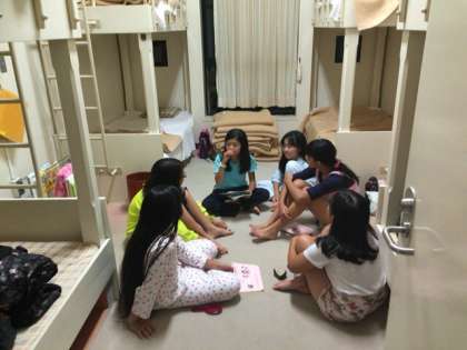 就寝準備を終えて、明日への話し合いをしたり、トランプなどをしたりして楽しんでいます。もうすぐ1日目が終わりですね。