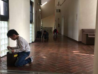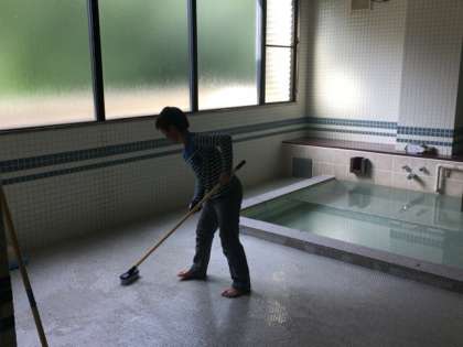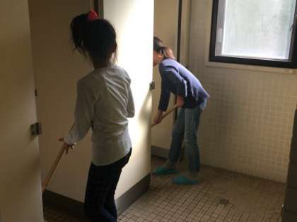 みんなで協力して掃除を頑張っています。来た時よりも美しく!!