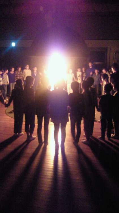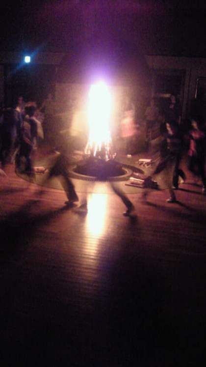 まずは、全員でのゲームからです。火のまわりでみんながひとつなっています。