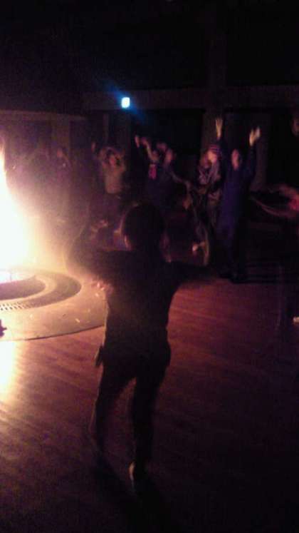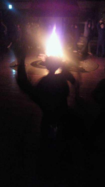 スタンツとスタンツの間は、ファイヤー部がリードする全員の踊りで盛り上がっています。