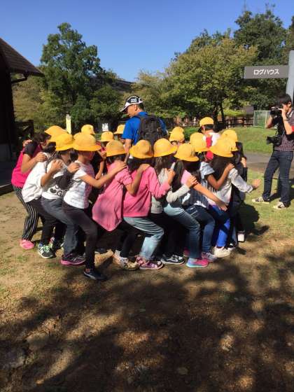 動きを通して、野生動物たちの「つながり」を学んでいます。3枚目の写真、何かに似ているような。組体操のバベルストレートかな?