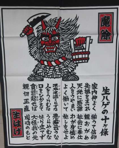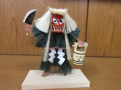 男鹿市みなさんからいただいた、なまはげの置物と暖簾です。