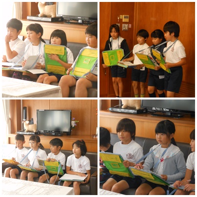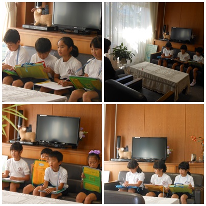 校長先生に学校行事についてインタビューに行きました。インタビューしながら、メモをとるって難しいね。