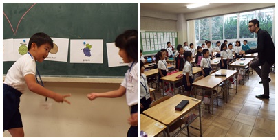 ベル先生に外国語を教えて頂きました。今日は、好きな果物を言う練習をしました。ジェスチャーから何の果物か予想して英語で答えたり、「I like〜」を使ってゲームをしたりしました。次回の外国語活動までに言い方を覚えてられるかな?