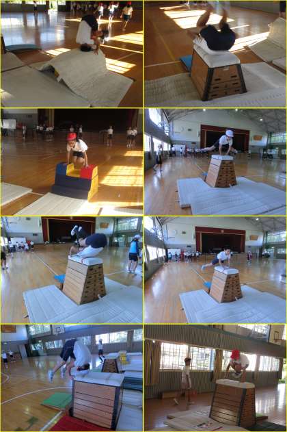 体育の学習で跳び箱運動に取り組んでいます。練習の仕方を工夫し、もう少しでできそうな技やもっと上手になりたい技など、自己の能力に適した課題を決めて頑張っています。