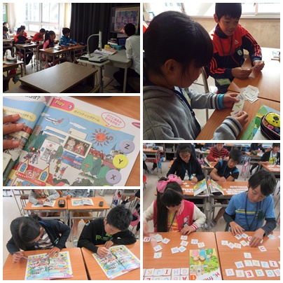 今日はA〜Zまでのカードを使って、発音練習やA〜Zを並べて覚える活動をしました。また、教科書のイラストからアルファベットを探すゲームをしました。