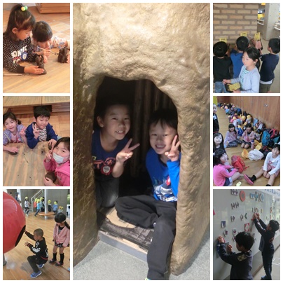 愛・地球博記念公園へ行ってきました。施設の館内では、音や風、匂いなどが体感できるグルグルタワーや、粘土、文字探しなどを楽しむことができました。友達と譲り合いながら、仲良く遊ぶことができました。