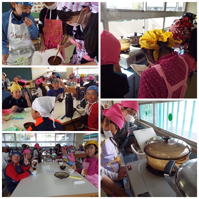 家庭科の授業でご飯と味噌汁を作りました。野外学習で野外炊事を経験したので、とても手際よく、協力して作っていました。この単元の最初では、ダシのない味噌汁を試食し、ダシの重要性、ダシのとり方を学びました。今日は煮干しからダシをとって作ったので、とてもおいしくできました。