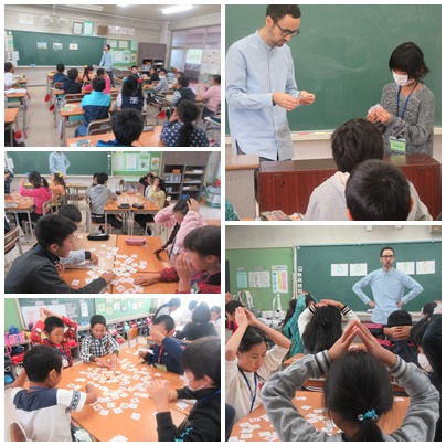 今日は「あなたは何がほしいですか?」の表現をチャンツやゲームをして覚えました。ゲームは、先生にほしいアルファベットのカードを尋ね、先生がほしいと答えたアルファベットのカードを取り合うものでした。とても白熱しました。