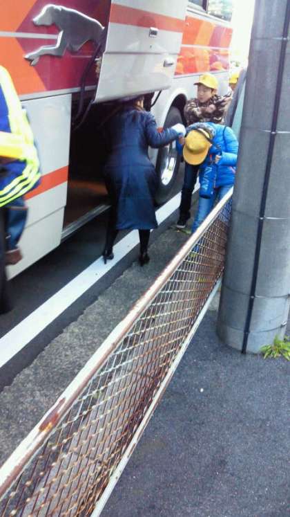 大きな荷物を持ってバス乗り場まできました。荷物を積み込んで、いよいよ出発です。