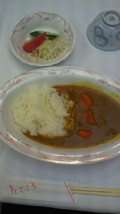 妙心寺の近くの花園会館で昼食をとっています。メニューはカレーライスです。