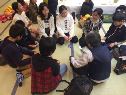 お腹もいっぱいになり、今から班別学習に出かけます!!班長に御守り(ケータイ)が配られました。