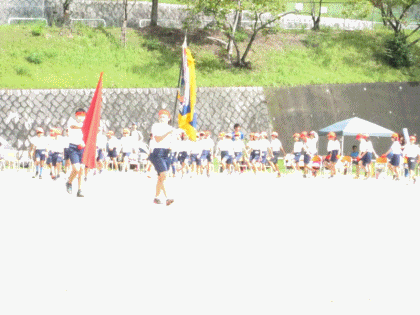5・6年生の作業のおかげで、何とか10時に入場行進を始めることができました。開会式の様子です。