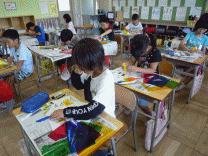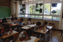 今は、教室や廊下の窓に作品が飾られ、色とりどりでとてもきれいです。