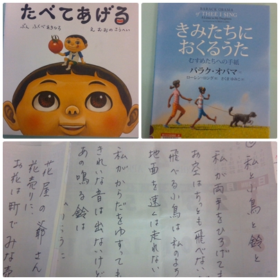 今日は、PTAのボランティアの方々による読み聞かせでした。詩や絵本を読んでいただきました。自分の普段の生活や、将来の自分について考えることのできる本でした。