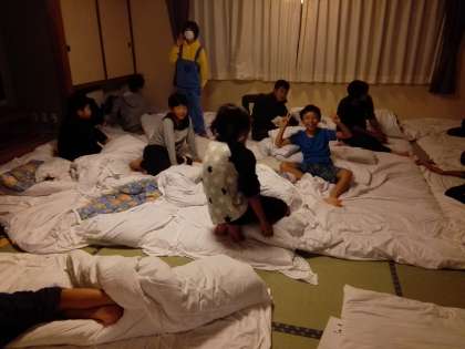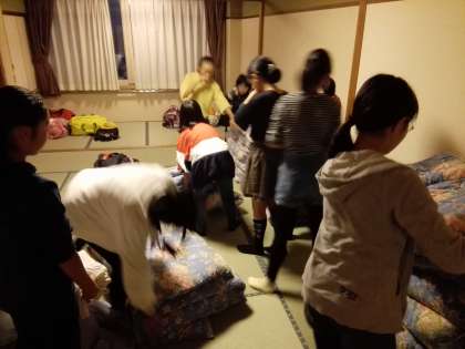 おはようございます❗まだ、眠そうな子もいますが、とりあえず起きました。女子の一部屋は、もう布団も片付いています。