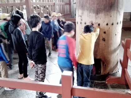 大仏様は大きすぎて、写真に収まりません。鼻の穴くぐりは、高森っ子で行列になっています。