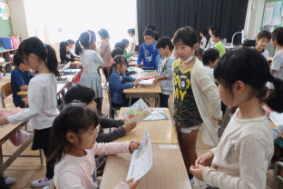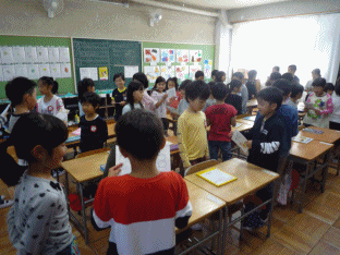 今朝は、1年生の教室に伺って、招待状を届けにいきました。