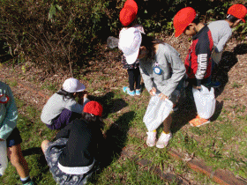11月8日(木)に1年生は、高森山周辺の公園で、どんぐりや松ぼっくりを拾いました。作りたいおもちゃに適した、大きさや形のものを一生懸命探していました。たくさん取れたので、楽しくおもちゃが作れそうですね。