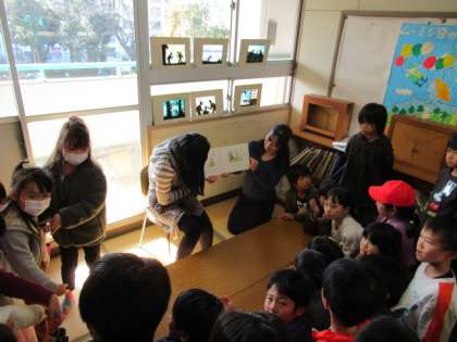 12月12日(木)、20分放課にボランティアの皆さんが読み聞かせをしてくださいました。2学期最後の放課の読み聞かせになり、多くの子どもたちが集まりました。