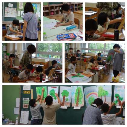 5組6組の算数と図工の様子です。進度にあわせて学習しています。