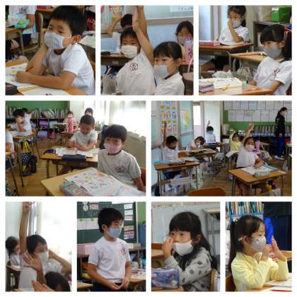 1時間目は算数。先生にあててほしい人がたくさんいます。