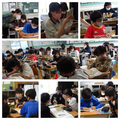 2組は社会、資料から気がついたことをグループで話し合っています。