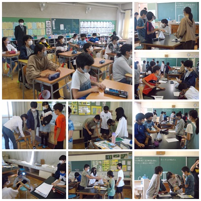 1組は理科の学習です。2組は討論の様子です。どちらの学級も和やかに学習していました。