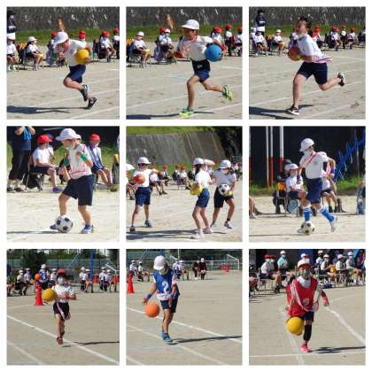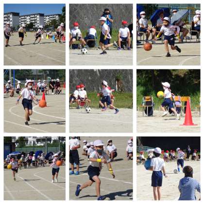 リレーの様子です。風が強かったので、おたまチームが大苦戦していました。