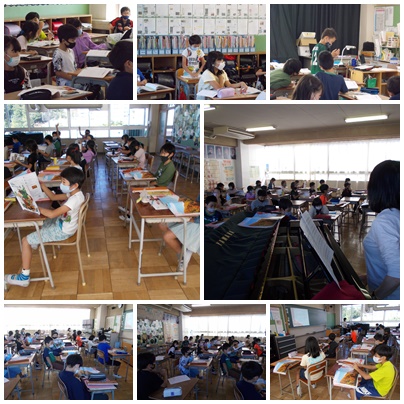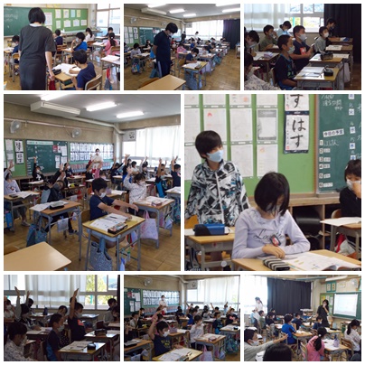 1組は、理科と音楽の授業です。理科の考えはいろいろな意見が出ていましたね。2組は算数の様子です。何倍になるかを考えられましたね。