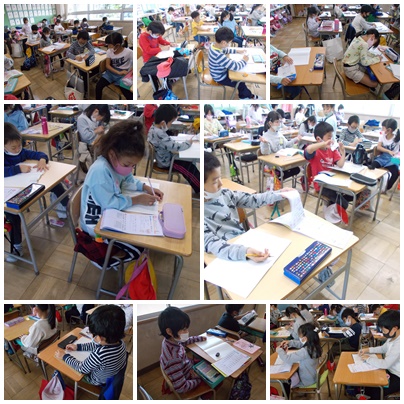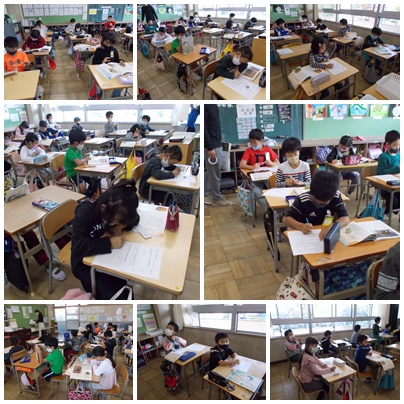 5時間目の様子です。1組は計算ドリルや鑑賞会の作文など、自分の課題に取り組んでいました。2組は道徳です。心に残った場面や登場人物の気持ちを考えていました。