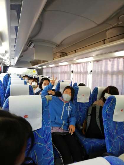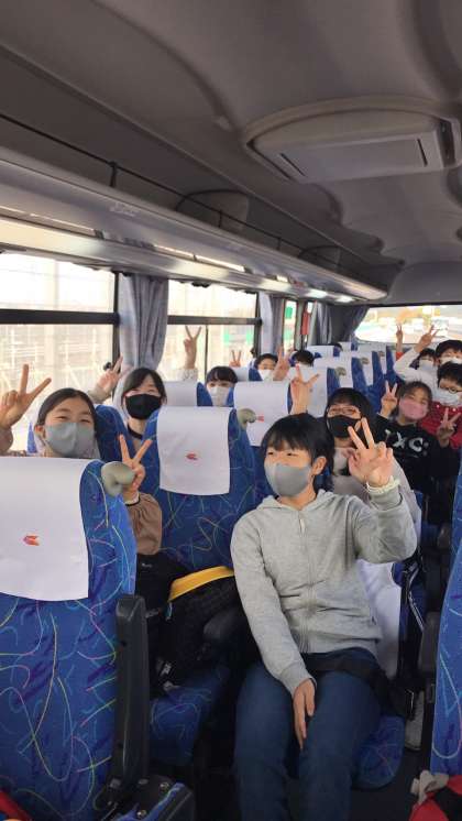1組と2組のバスの様子です。 1組は、リラックスモード。 2組は、DVDを観ています。