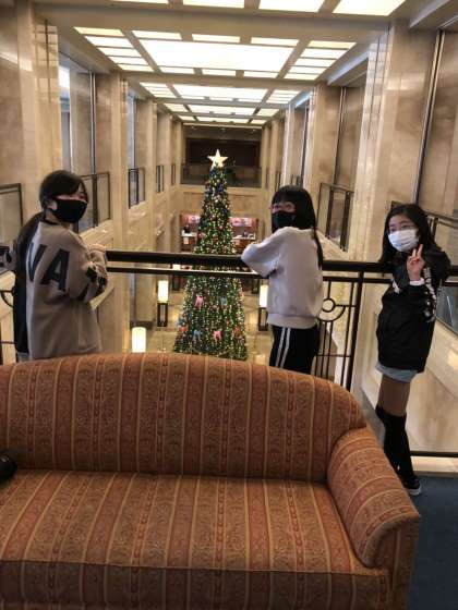法隆寺では、紅葉が見頃でした。ホテルでは、クリスマスツリーがかざられていました。