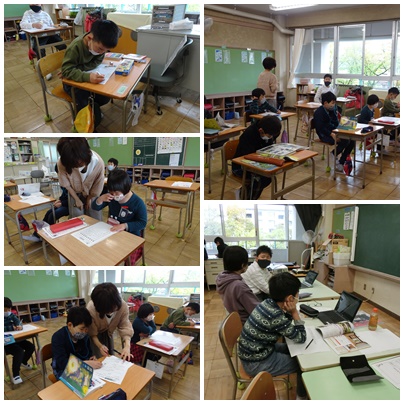 高学年の子は、PCで調べながら勉強していました。どの子も真面目に学習しています。