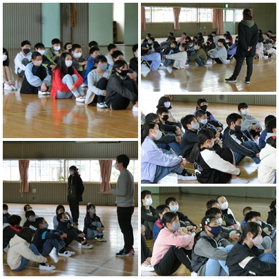 学年集会の様子です。みんな、話す人の顔を見てしっかり聞いています。さすがです!最高学年として、みんなのお手本ですね。頼もしい♪