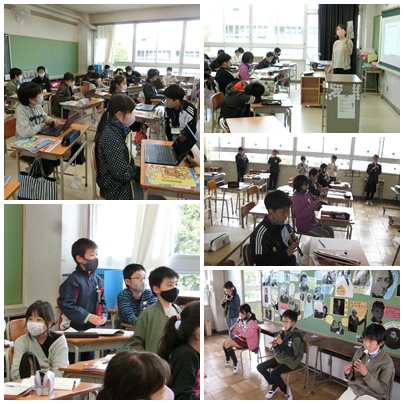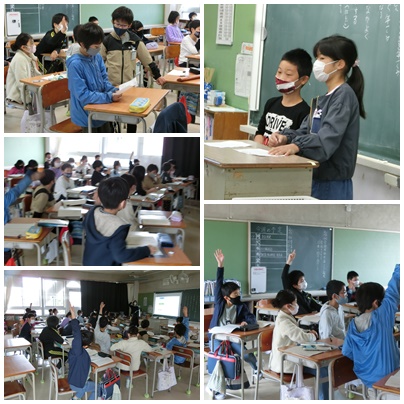 1組は、級訓について話し合っています。良い意見がたくさん出ていました。2組は、外国語の学習でPCを使っていく話をしています。楽しみですね。