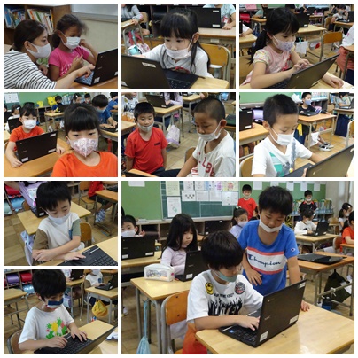 今日の午後、1〜4年生と、56組の様子です。午後もがんばっています。