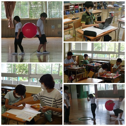交流学級で過ごす時間が多くなり、みんなそろうのは給食の時間ぐらいです。今日は、体育館で身体を動かしました。