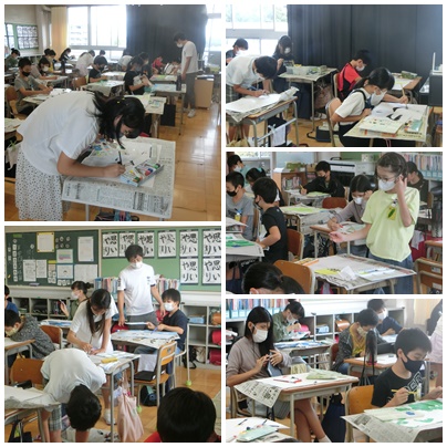 図工の様子です。細かいところにまで気を配りながら色付けしています。集中していますね。