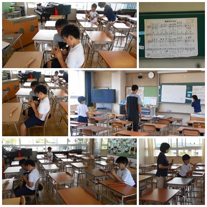 音楽室での授業の様子です。リコーダーの演奏をしました。