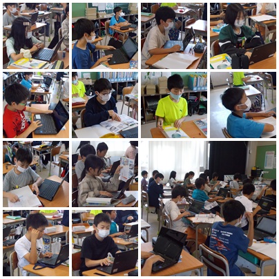 1組は、家庭科の授業の様子です。練習布を使って手縫いをしました。 2組は、社会科の授業の様子です。北海道のくらしについてchromebookを使ってみんなでまとめました。