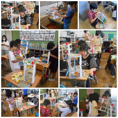 図画工作の授業の様子です。今まで作り上げてきた「コロコロガール」の工作を完成させました。素敵な立体作品ができましたね。