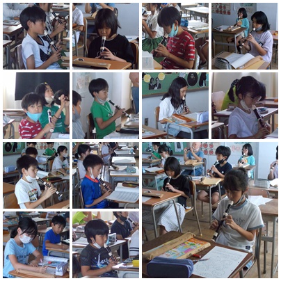 音楽の授業の様子です。指揮をしながら「エーデルワイス」を歌いました。リコーダー練習もしました。