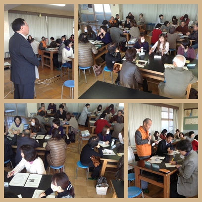 今年度3回目,通算で第5回を迎える校区見守り連絡会が開かれました。はじめに,1月に行われたPTA研究発表の校内発表会がありました。研究の成果をまとめたものを改めて地域のみなさんにも見ていただくことができました。