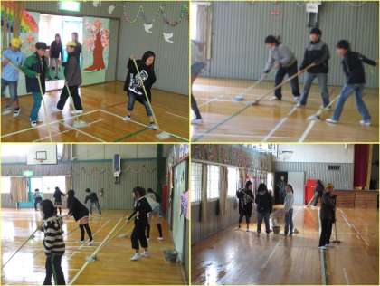 3月13日(水)、5年生の美化委員と有志のみなさんで体育館のワックスがけをおこないました。みんなで協力して、体育館をピッカピカにしました。