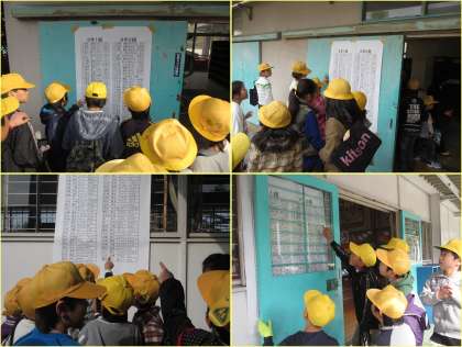 4月9日(火)、登校してきた子どもたちは、ワクワクドキドキしながら、学級発表の掲示物から自分の名前を探していました。