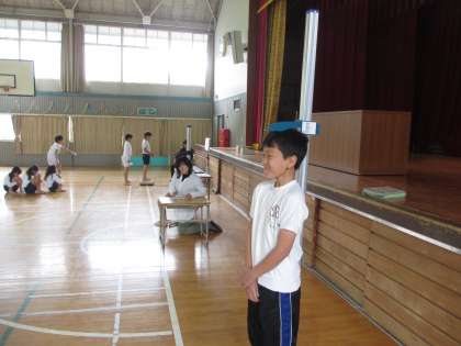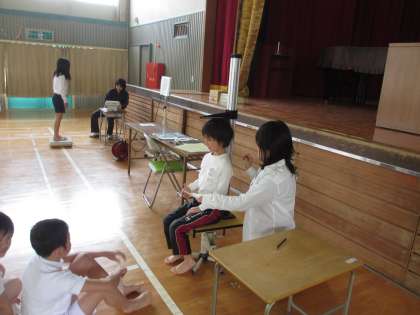 定期健康診断が始まりました。最初は、身長・体重・座高の測定からです。自分の成長や発達に関心を持ち、より健康に生きる力を育てていこう。