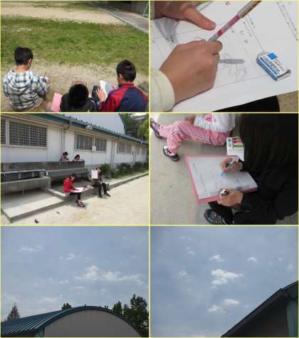 理科「天気の変化」の学習で、雲の観察をしました。1日の雲の動き、量、形の変化を調べました。